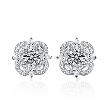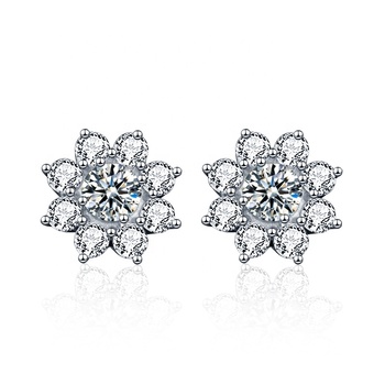 뜨거운 최고 판매 패스 다이아몬드 테스터 고급 보석 꽃 모양 VVS 모이사나이트 스터드 귀걸이 925 스털링 실버 GRA 인증서