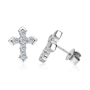 Moissanite 다이아몬드 크로스 귀걸이 925 스털링 실버 남성 여성 고급 보석 매력