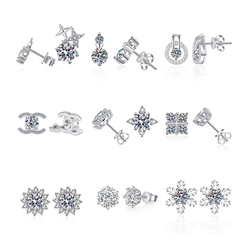 핫 세일 다이아몬드 테스터 Vvs 925 스털링 실버 눈송이 라운드 컷 모이사나이트 귀걸이 여성 웨딩 쥬얼리 0.5ct