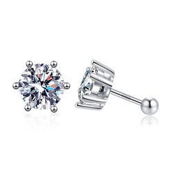 أقراط 6 مخالب كلاسيكية من الفضة الإسترلينية E063 S925 أقراط نسائية قيراط من المويسانيت اللولبية
