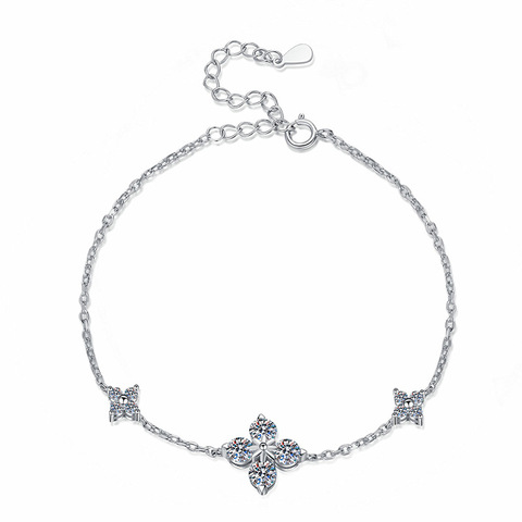 เครื่องประดับแฟชั่น S017นำโชคโคลเวอร์สี่แฉกเพชรโมอิสซาไนต์925สเตอร์ลิงเงินสร้อยข้อมือเพชรโมอิสซาไนต์