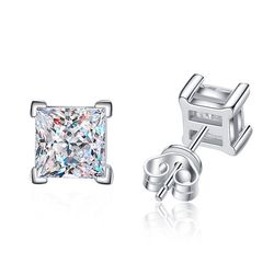 E070 925 ayar gümüş lüks kalite kare prenses Moissanite elmas top küpeler kadınlar için