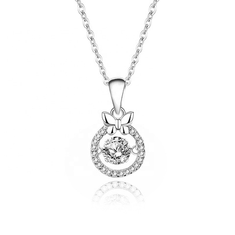 Bán buôn xinh xắn 925 Sterling Silver bạc moissanite nhảy múa đá Mặt dây chuyền vòng cổ Bow Hollow bướm thiết kế cho đám cưới
